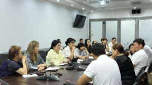 Жолугушууда эки тарап ишке ашырылып жаткан долбоорлор жана аткарылып жаткан иштер боюнча презентацияларды көрсөтүштү.