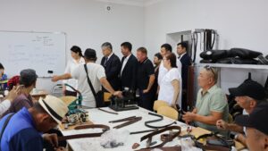 Министр столярдык жана тигүү цехтеринин иши менен таанышып, программалардын катышуучулары менен баарлашып, уюмдун жамаатына ишке берилгендиги үчүн ыраазычылык билдирди.