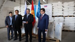 Кыргызстанга Россия Федерациясынан 1 280 тонна азык-түлүктөн турган жаңы гуманитардык жардам партиясы келди. Ал БУУнун Дүйнөлүк азык-түлүк программасы (ДАП) алкагында акысыз берилди жана өлкө боюнча аялуу үй-бүлөлөргө бөлүштүрүлөт.