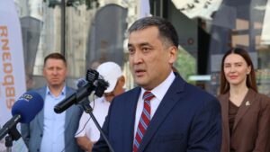«Бүгүн биз Бишкекте алгачкы социалдык дүкөн «Евразияны» ачып жатабыз. Ал пенсионерлер, аз камсыз болгон үй-бүлөлөр жана жардамга муктаж башка жарандар үчүн керектелүүчү биринчи зарыл товарлардын жеткиликтүүлүгүн камсыздоо максатында түзүлдү.