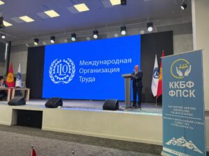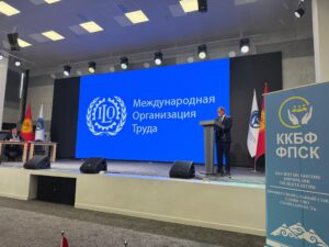 КР Эмгек, социалдык камсыздоо жана миграция министри Канат Сагынбаев Ысык-Көл облусунда өтүп жаткан Кыргызстан кесиптик бирликтер федерациясынын XXVII съездинин ишине катышты.