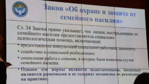 ” Эгер жыл ичинде бардык инстанцияларга миңдеген адамдар кайрылышса, сотко болгону жүздөгөн иштер гана жетет. Зомбулуктан жабыркагандар көп учурда зомбулук көрсөткөн адам менен жалгыз калышат. Айрыкча балдарга жана майыптуулугу бар адамдарга карата зомбулуктун өсүшү байкалууда – алар эң алсыз катмар бойдон калууда».
