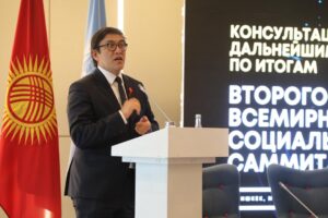 Министрдин орун басары Бакыт Дарманкул уулу Социалдык өнүгүү боюнча Экинчи дүйнөлүк саммитинин жыйынтыктары боюнча жогорку деңгээлдеги консультацияларда адамдык капиталды өнүктүрүүнүн негизги артыкчылыктарын көрсөттү