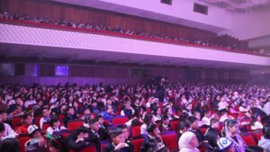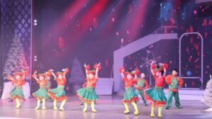 Кичинекей коноктор үчүн балдар бий коллективдеринин тарбиялануучулары тарабынан даярдалган театрлаштырылган музыкалык жаңы жылдык көрсөтүү тартууланды.