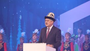Кыргыз Республикасынын Мамлекеттик катчысы А.К. Койчиев Кыргыз Республикасынын Президенти Садыр Нургожоевич Жапаровдун атынан куттуктоо кайрылуусун окуп берди.