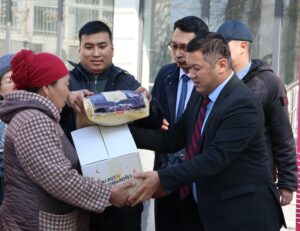Бишкекте 500 аз камсыз болгон үй-бүлөлөргө азык-түлүк баштыктары тапшырылды