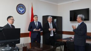 Президенттин жана Министрлер Кабинетинин чечимдерин даярдоо боюнча башкармалыктын тармактык саясат бөлүмүнүн башкы эксперти Улан Султанбаев Кыргыз Республикасынын Эмгек, социалдык камсыздоо жана миграция министрлигинин борбордук аппаратына министрдин жаңы орун басары Байгончоков Мирланбек Конушбековичти тааныштырды.
