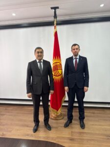 В Министерстве труда, социального обеспечения и миграции Кыргызской Республики состоялась встреча министра Каната Сагынбаева с Чрезвычайным и Полномочным Послом Соединённого Королевства Великобритании и Северной Ирландии в КР Николасом Боулером.