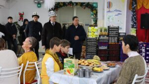 В преддверии Нового года Председатель Кабинета Министров Кыргызской Республики А.А. Касымалиев посетил Жайылское женское психоневрологическое и Беловодское детское стационарное учреждение при Министерстве труда, социального обеспечения и миграции КР, где поздравил получателей социальных услуг с наступающим Новым годом и подчеркнул важность адресной поддержки социально уязвимых категорий граждан.