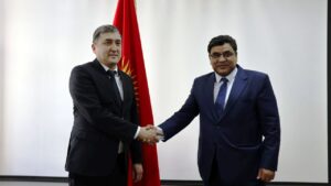 Сегодня, 20 февраля, в Министерстве труда, социального обеспечения и миграции Кыргызской Республики состоялась встреча министра К. Л. Сагынбаева с Чрезвычайным и Полномочным Послом Республики Индия в Кыргызской Республике Бирендером Сингхом Ядавом.