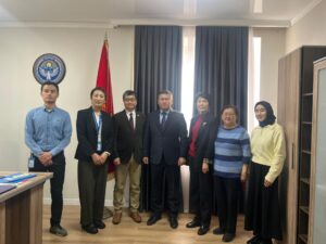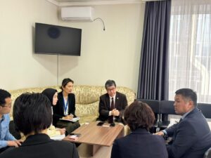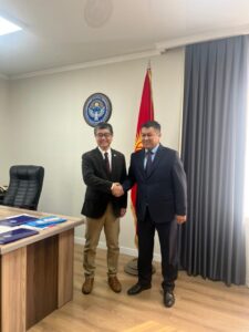В Министерстве труда, социального обеспечения и миграции Кыргызской Республики 17 марта 2026 года состоялась встреча первого заместителя министра К.С. Досматова с менеджером проекта «Проект по расширению возможностей лиц с нарушением слуха и речи для развития лидерских качеств следующего поколения в Кыргызской Республике» Осуги Ютака.